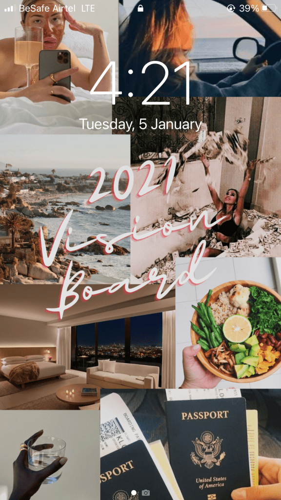 Add all the pictures you want and arrange them in the way that best suits your preference and write “2021 Vision Board” (the write up is not compulsory, it’s just there as a reminder)